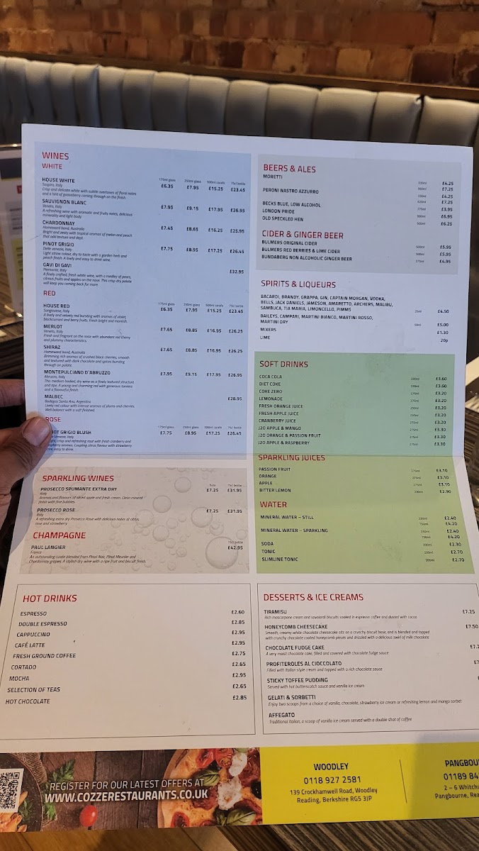 In short, the Cozze Menu is a solid choice for Italian dining in Woodley-versatile enough for date nights, family outings, or casual catch-ups with friends.
